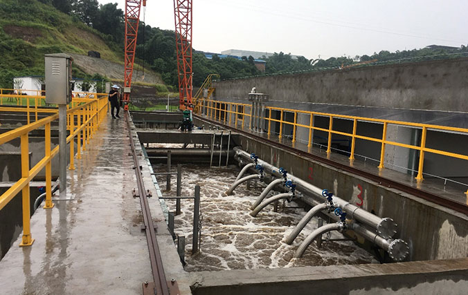 本項目設計規模15000噸/天,分三期實施,一期新建日處理5000噸/天污水處理廠,深度處理工藝MBR系統設計一期處理規模為3000噸/天,污水處理主體工藝采用A2O+MBR,出水排放標準達到《四川省岷江、沱江流域水污染排放標準》(DB51/2311-2016)合格標準。項目選型為水藝SMU-30A產品,設計平均通量為13.35L/m2/h。項目設計2座膜池,每座膜池布置6個膜架,每個膜架52簾SMU-30A,共用膜面積9360平方。項目投運時間為2018年3月。