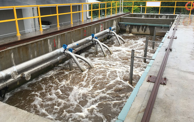 本項(xiàng)目設(shè)計(jì)規(guī)模15000噸/天,分三期實(shí)施,一期新建日處理5000噸/天污水處理廠,深度處理工藝MBR系統(tǒng)設(shè)計(jì)一期處理規(guī)模為3000噸/天,污水處理主體工藝采用A2O+MBR,出水排放標(biāo)準(zhǔn)達(dá)到《四川省岷江、沱江流域水污染排放標(biāo)準(zhǔn)》(DB51/2311-2016)合格標(biāo)準(zhǔn)。項(xiàng)目選型為水藝SMU-30A產(chǎn)品,設(shè)計(jì)平均通量為13.35L/m2/h。項(xiàng)目設(shè)計(jì)2座膜池,每座膜池布置6個(gè)膜架,每個(gè)膜架52簾SMU-30A,共用膜面積9360平方。項(xiàng)目投運(yùn)時(shí)間為2018年3月。