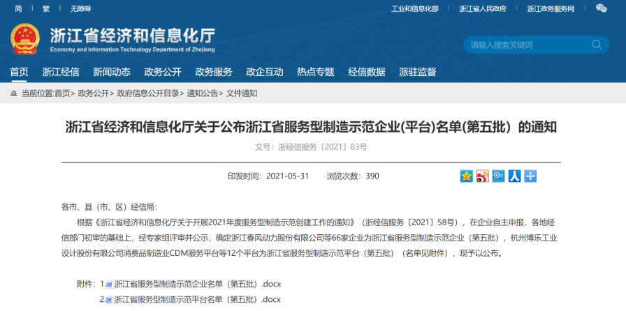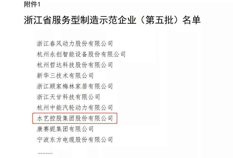 5月31日,浙江省經信廳發布了“關于公布浙江省服務型制造示范企業(平臺)名單(第五批)的通知”。水藝控股集團股份有限公司獲評浙江省服務型制造示范企業,是此次評選活動中寧波杭州灣新區唯一入選的企業。