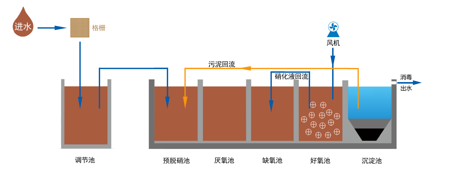 新型UCT一體化高效生物反應器,采用改良型UCT工藝結合改性MBBR生物膜工藝,提升了傳統的A2/O工藝脫氮除磷效果。設備運行維護簡單,出水可穩定達到《城鎮污水處理廠污染物排放標準》(GB18918-2002)一級A標準。